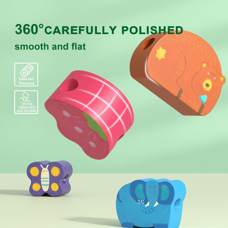 - Rozvoj jemné motoriky – navlékání dílků pomáhá dětem v manévrování prstů a zlepšování koordinace