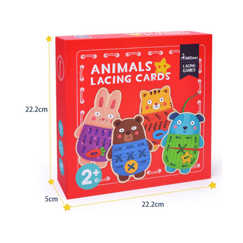 Ponořte své děti do kreativní edukace s touto veselou sadou od MiDeer. V jednoduchém, ale kouzelném designu najdete 12 dřevěných dílů a 4 bavlněné šňůrky, pomocí kterých děti skládají a provlékají 4 různá zvířátka – ideálně přizpůsobená velikostí pro malé ruce.
