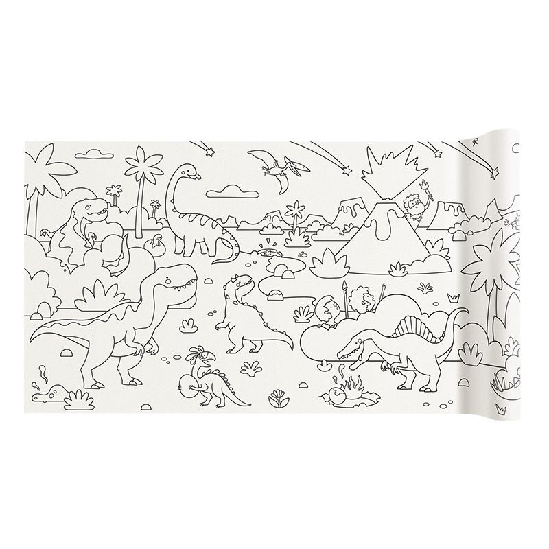 Velkoformátová omalovánka s motivem dinosaurů nadchne všechny malé objevitele pravěkého světa. Díky praktické roli si děti mohou odvinout přesně takovou délku, jakou potřebují, a pustit se do tvoření bez omezení. Samolepicí spodní vrstva zajistí, že papír drží na místě – na stole, podlaze i na zdi.