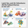 - Praktická soutěžní sada – díky závodním bránám se z tvoření stává závod a zábava dostává nový rozměr.