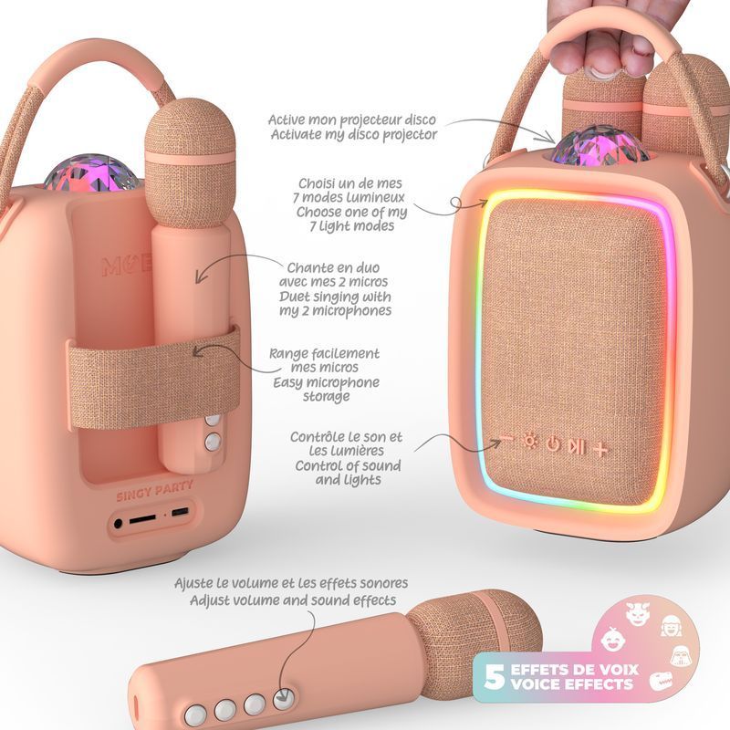 Karaoke sada MOB Singy Party v růžovém provedení promění každou dětskou oslavu nebo rodinné odpoledne v opravdovou hudební show. Stačí pustit oblíbenou hudbu, vzít do ruky mikrofon a začít zpívat.