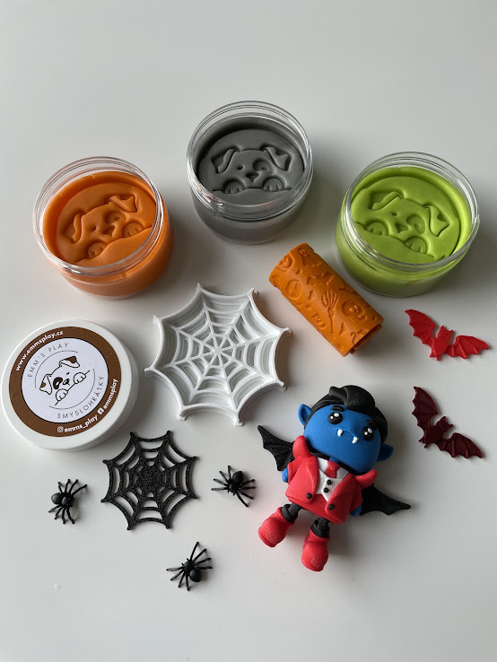 K modelínové sadě UPÍR můžete pořídit smyslovou tubu PAVOUCI, která sadu modelín krásně doplní.