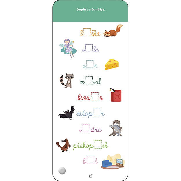 - 20 oboustranných stíratelných kartiček s úlohami na vyjmenovaná slova, ideální pro opakování a procvičování.