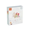 Krásná dřevěná sada s motivy jarní zahrady plná barevných květin, motýlů, ptáčků a dalších veselých tvarů, kterou si děti mohou sázet, skládat a stavět do různých tvarů. Díly mohou vrstvit, řadit podle velikosti nebo používat jako součást volné imaginativní hry – například jako krásnou scénu jarní louky plnou života. Sada podporuje více způsobů hry a je vhodná i pro menší děti, které se učí objevovat tvary a rozvíjet své motorické dovednosti.