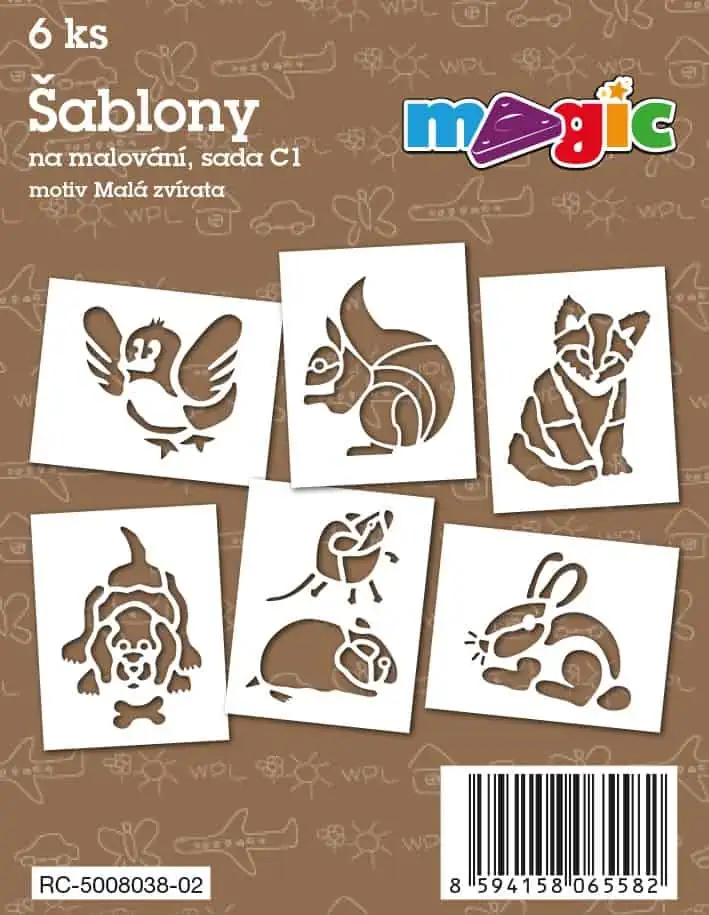 Papírové šablony MAGIC, 11 x 14cm, 6ks, sada C1 – Malá zvířata