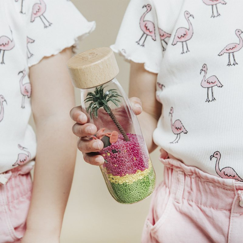 Petit Boum Observation Bottle Flamingo je skvělá volba smyslové hračky, která baví i učí zároveň!