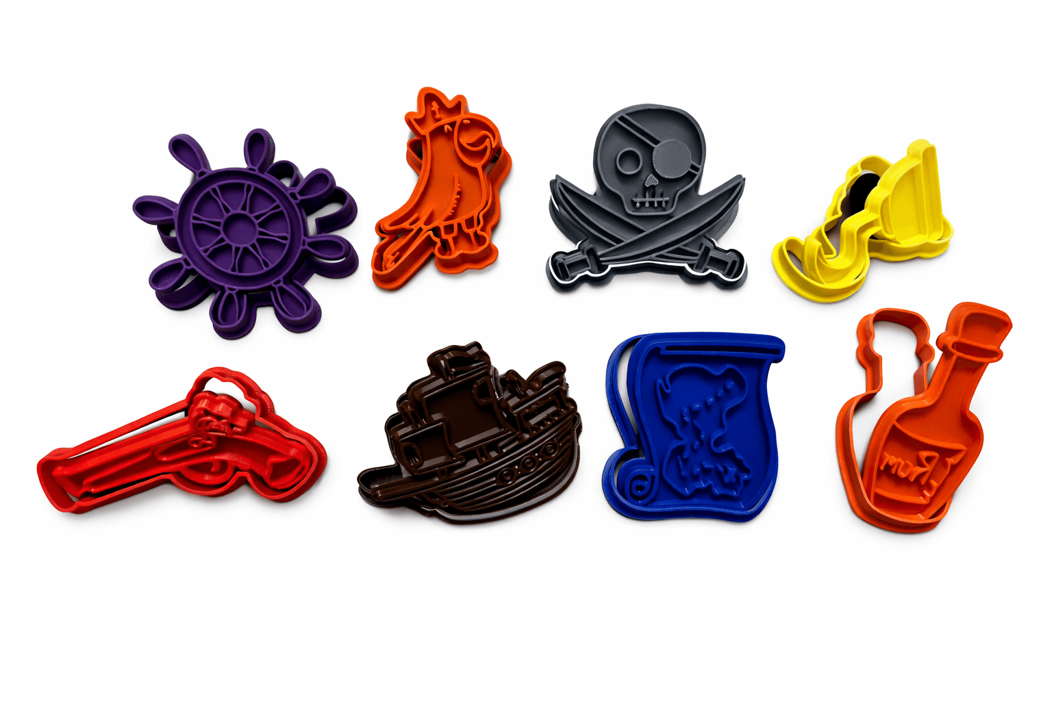 Sada obsahuje 8 ks tvořítek 2v1 s motivy pirátů a moře v různých barvách.