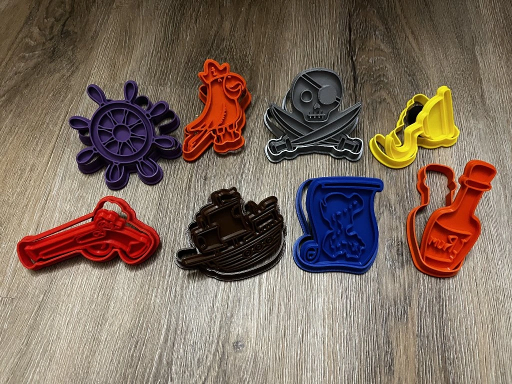 Tvořítka/razítka 2v1 Piráti spojuje razítko a vykrajovátko pro rychlé a čisté tvoření. Funguje skvěle s plastelínou i kinetickým pískem. Zadní úchytka usnadňuje manipulaci dětem i dospělým. PLA je lehké a snadno se udržuje; myčka se nedoporučuje. Ideální pro milovníky dinosaurů, otisky a nácvik jemné motoriky.