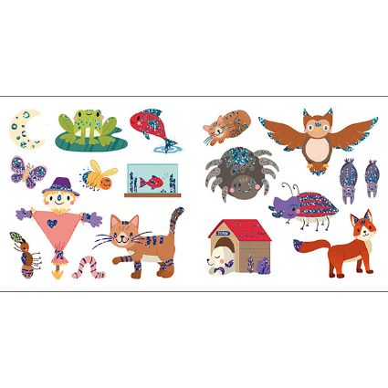 • 4 listy samolepek, z toho část s efektem metalického lesku, ideální pro tematické noční ilustrace.