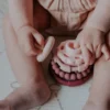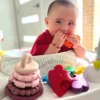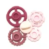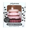 Barevná pyramida v růžových tónech od  Jellystone Designs je dokonalá víceúčelová hračka, protože vaše dítě rychle zjistí, že stohovací kroužky nejsou nic jiného než tolik oblíbená a praktická kousátka.