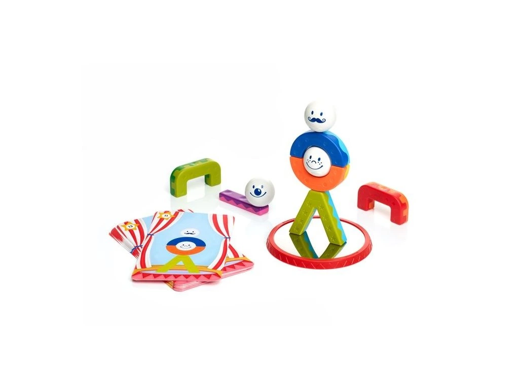 V sadě najdete 6 barevných tvarů, 3 koule s obličeji a stabilní kovovou základnu pro snadné stavění. Součástí balení je také 24 kartiček s předlohami, které dětem pomáhají rozvíjet logické myšlení, koordinaci a kreativitu.
