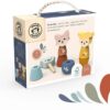 3 roztomilá zvířátka (cca 11 cm), každé se 2 šroubovacími díly. Dítě díly přišroubuje na správné místo, zkontroluje tvar a může skládat znovu, jak chce. Doporučeno pro věk 2–5 let.
