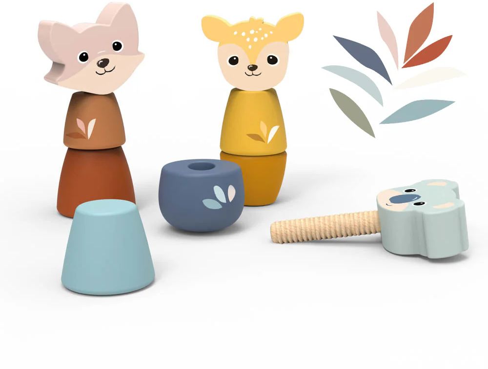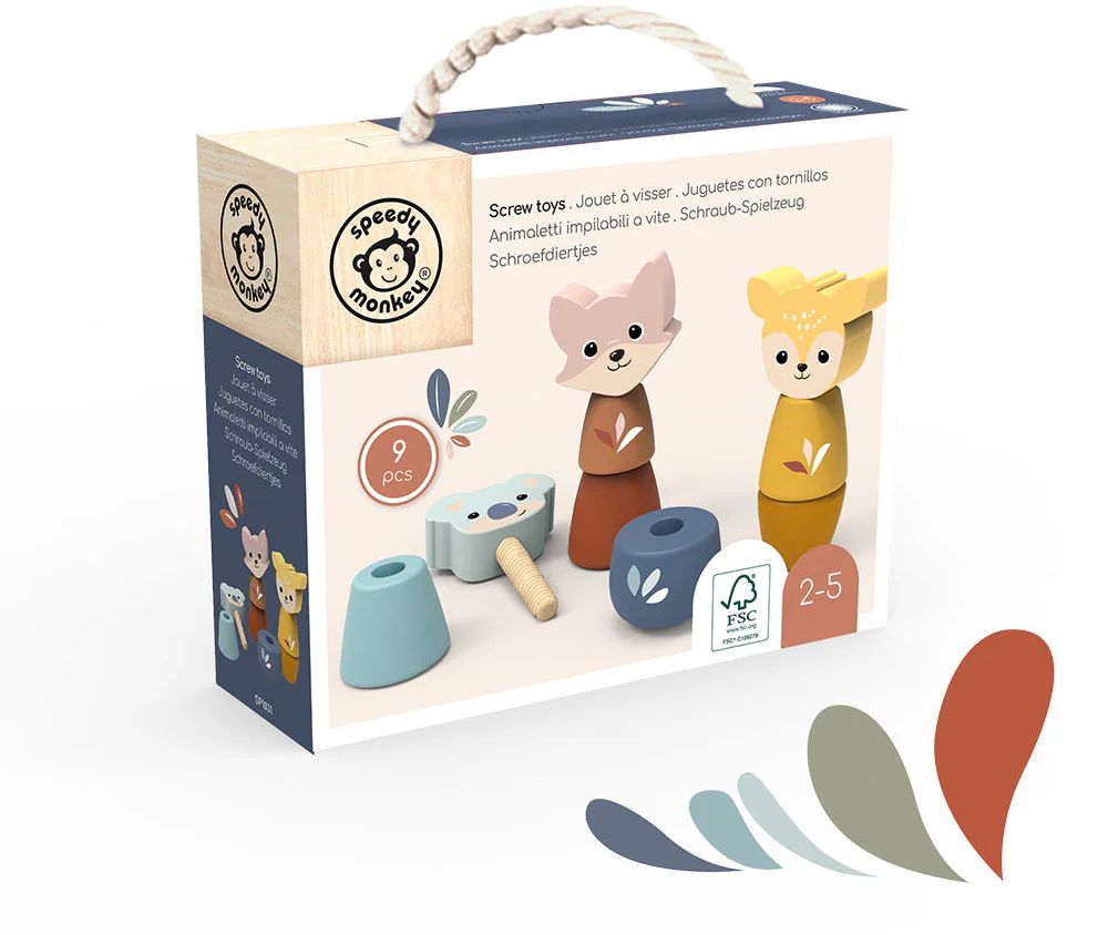 Zatočte s nudou doslova! Screw Toys jsou roztomilá dřevěná zvířátka, kterým děti našroubují části těla a zase je odšroubují – trénují tak úchop, koordinaci oko–ruka a trpělivost. Sada je navržená pro malé ručky: hladké tvary, příjemný odpor při šroubování a jasné barvy lákají ke hře i opakování. Skvělé na tiché chvilky doma i do kavárny – bez obrazovek, zato s pořádnou dávkou soustředění a radosti. Vyrobeno z FSC® dřeva s netoxickými barvami; povrch stačí po hraní otřít vlhkým hadříkem.