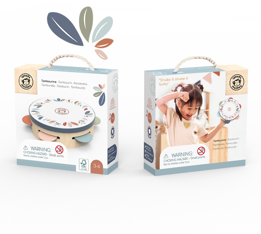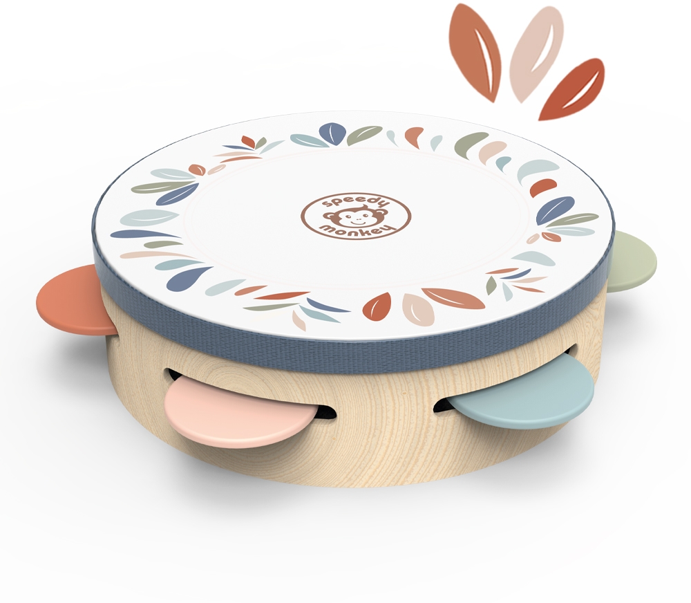 Nechte děti objevit kouzlo rytmu s krásnou a hravou tamburínou od značky Speedy Monkey. Tento dřevěný hudební nástroj kombinuje stylový vzhled s funkčním designem.