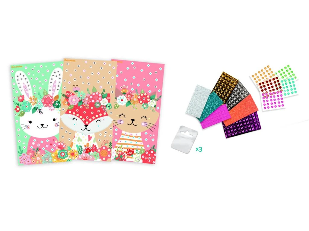Kreativní sada pro děti od 5 let, která přináší zábavu i rozvoj dovedností! Pomocí barevných pěnových mozaiek a třpytivých kamínků si děti dozdobí 3 krásné obrázky. Podle jednoduchého návodu postupně doplňují jednotlivé dílky a vytváří efektní dekorace, které si mohou vystavit v pokojíčku. Stačí přilepit průhledný závěs na zadní stranu a zavěsit. Tato tvořivá činnost rozvíjí jemnou motoriku, trpělivost i schopnost soustředění.