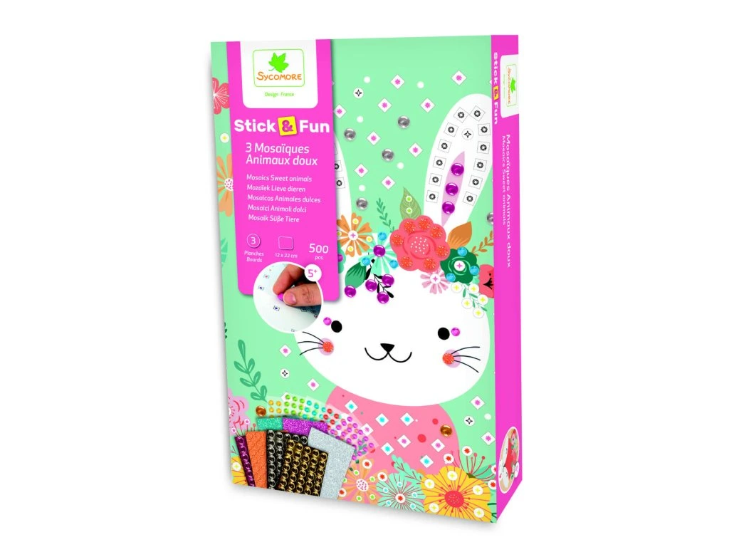 Tato malá mozaika nadchne každé tvořivé dítě. Z barevných pěnových dílků a kamínků si vytvoří tři třpytivé obrázky. Tvoření je jednoduché, přehledné a výsledky jsou vždy efektní. Hotové obrázky si děti mohou zavěsit na zeď jako dekoraci. Zábava, která zároveň rozvíjí motoriku, koncentraci i estetické vnímání.