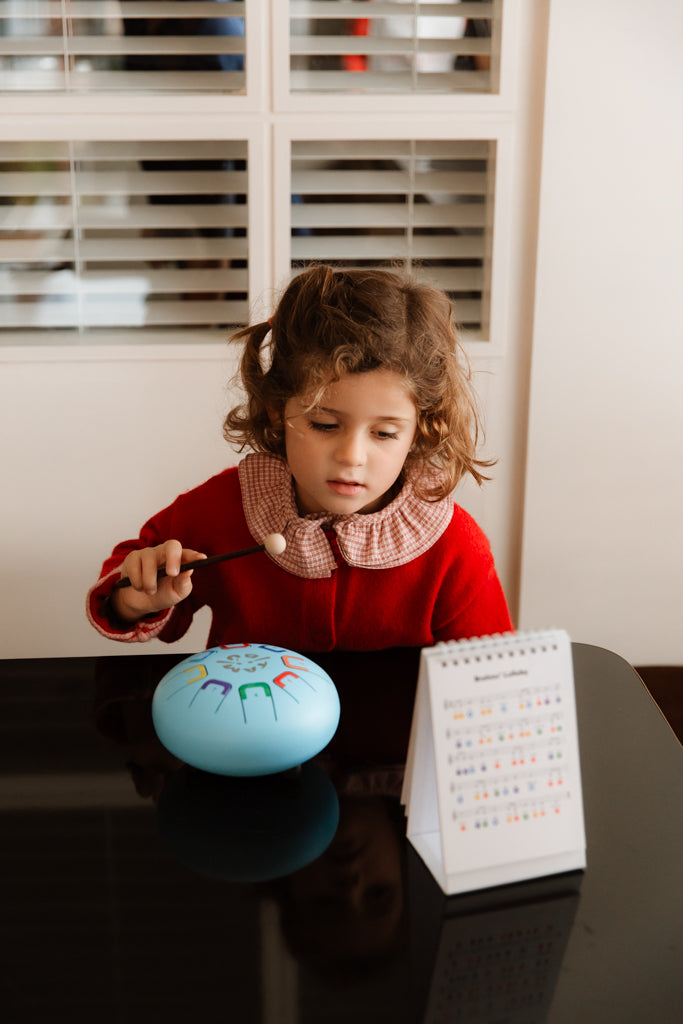 Díky jednoduchému způsobu hraní je nástroj ideální i pro úplné začátečníky. Stačí jemně poklepat paličkami nebo prsty na jednotlivé jazýčky a dítě okamžitě uslyší krásný tón. Hraní tak přináší okamžitou radost a podporuje chuť zkoušet další zvuky.