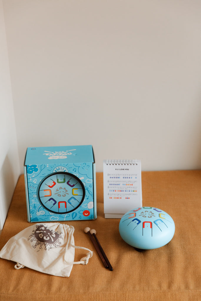 Tambú Baby (malé modré) je jemný hudební nástroj navržený speciálně pro malé děti, které začínají objevovat svět zvuků a rytmu. Tento tónový bubínek vydává příjemné, harmonické tóny, které působí uklidňujícím dojmem a zároveň děti přirozeně motivují k objevování hudby.