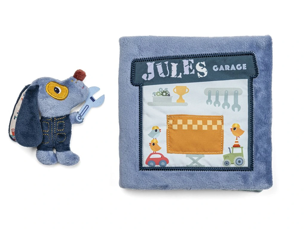 Lilliputiens – Textilní knížka: Pejsek Jules v garáži