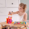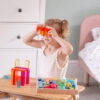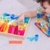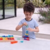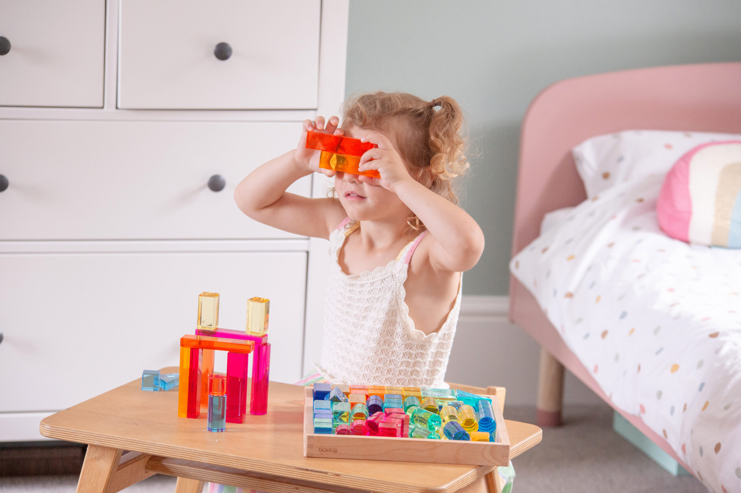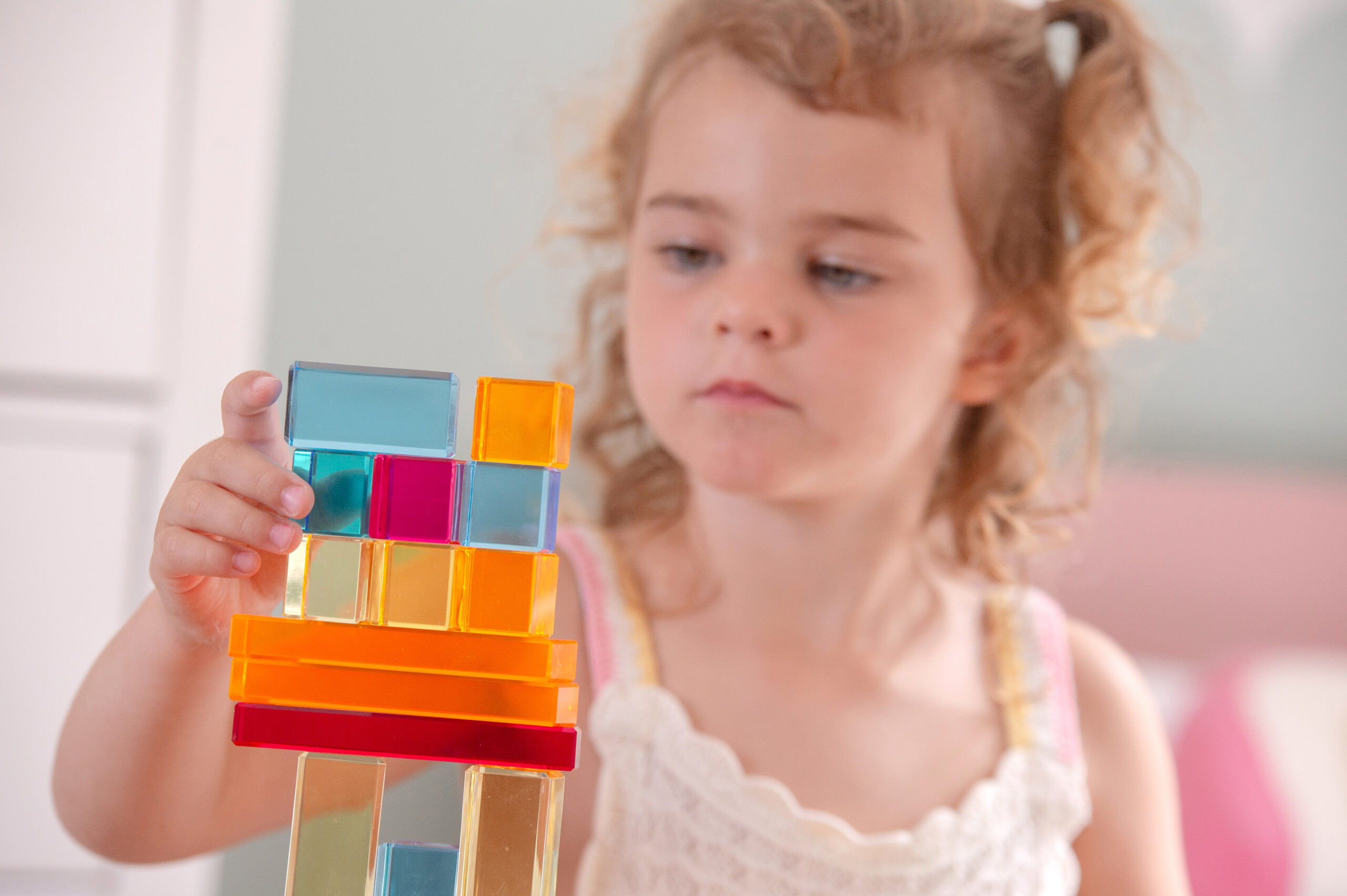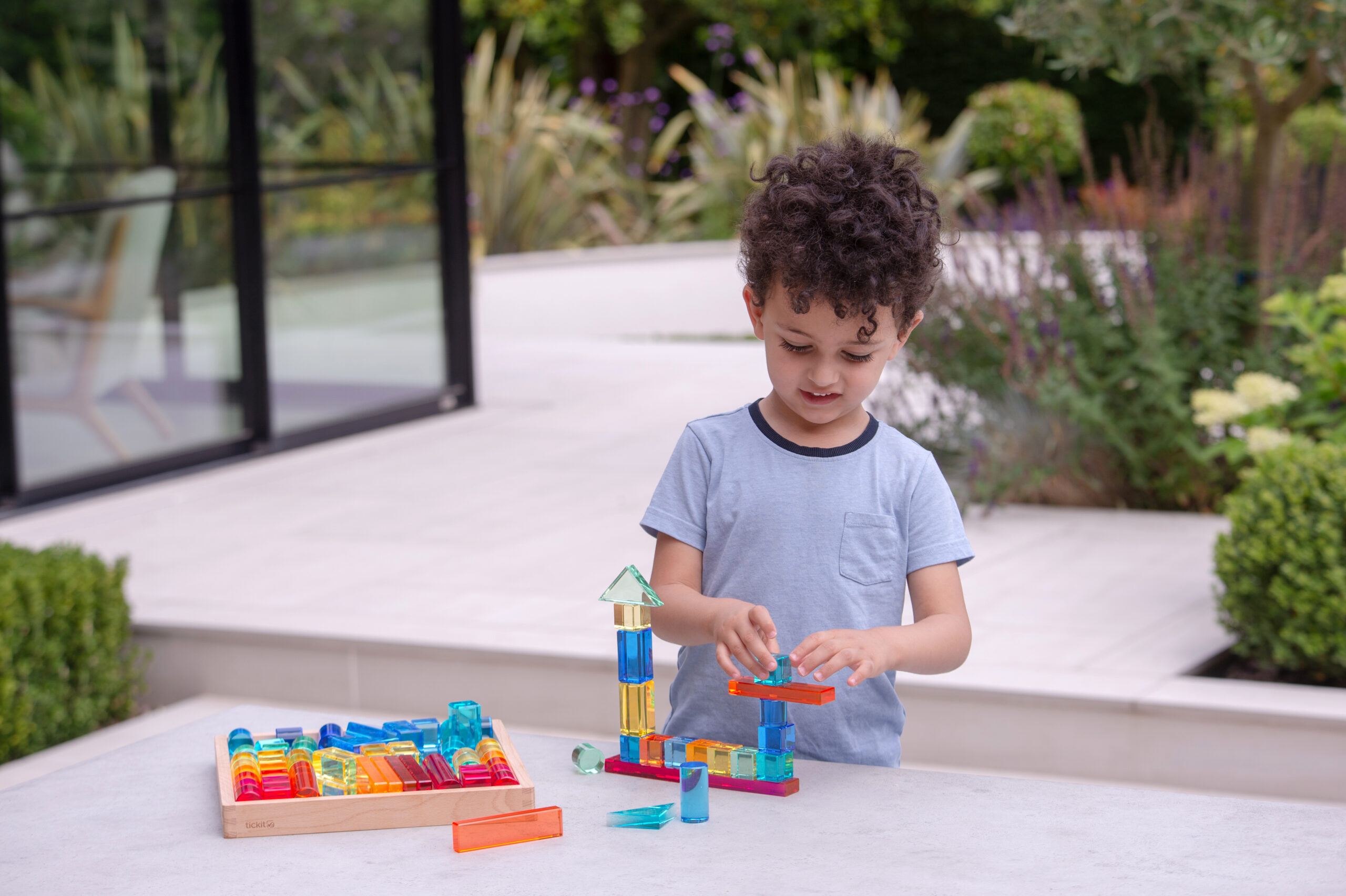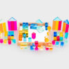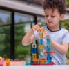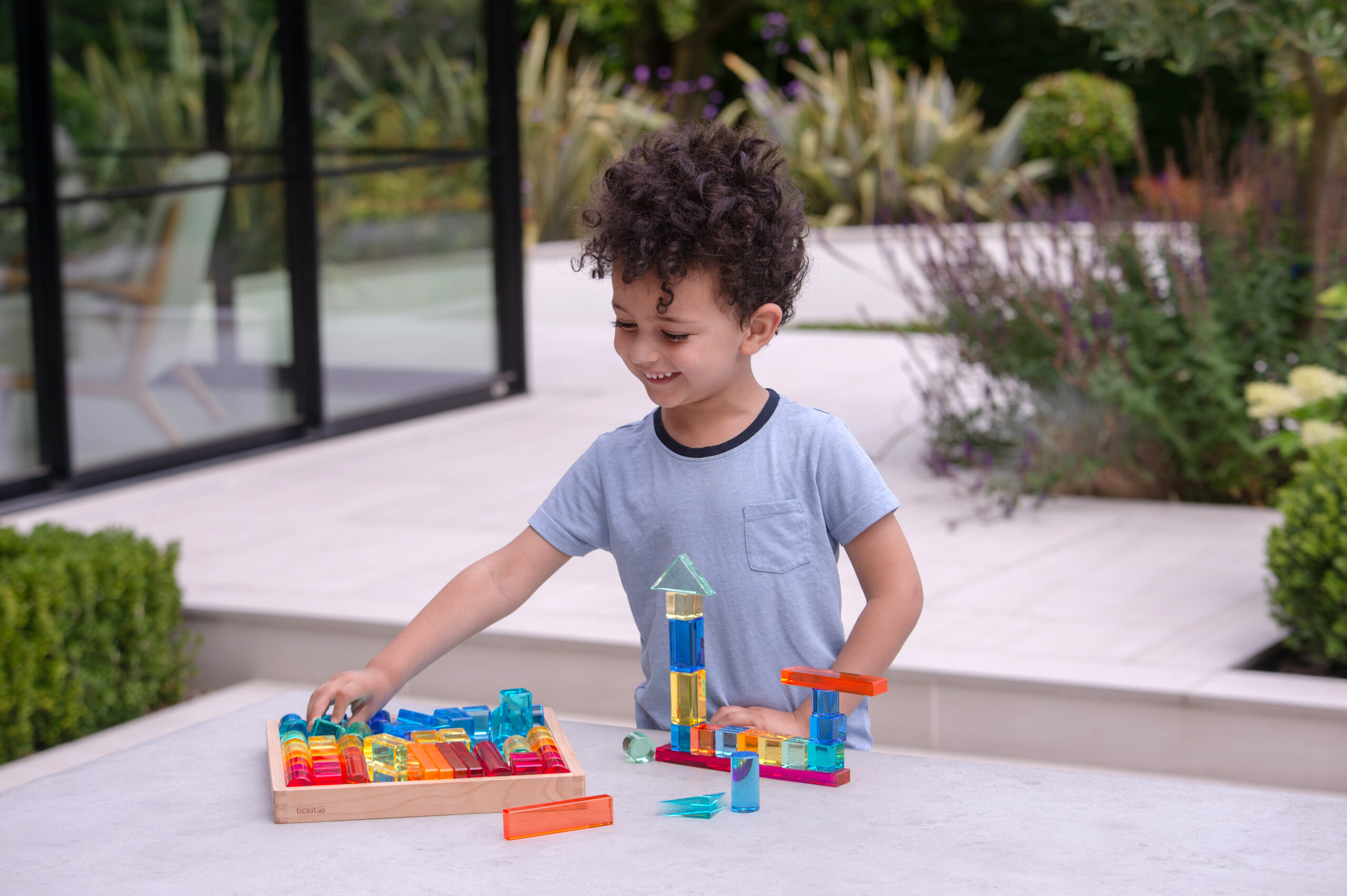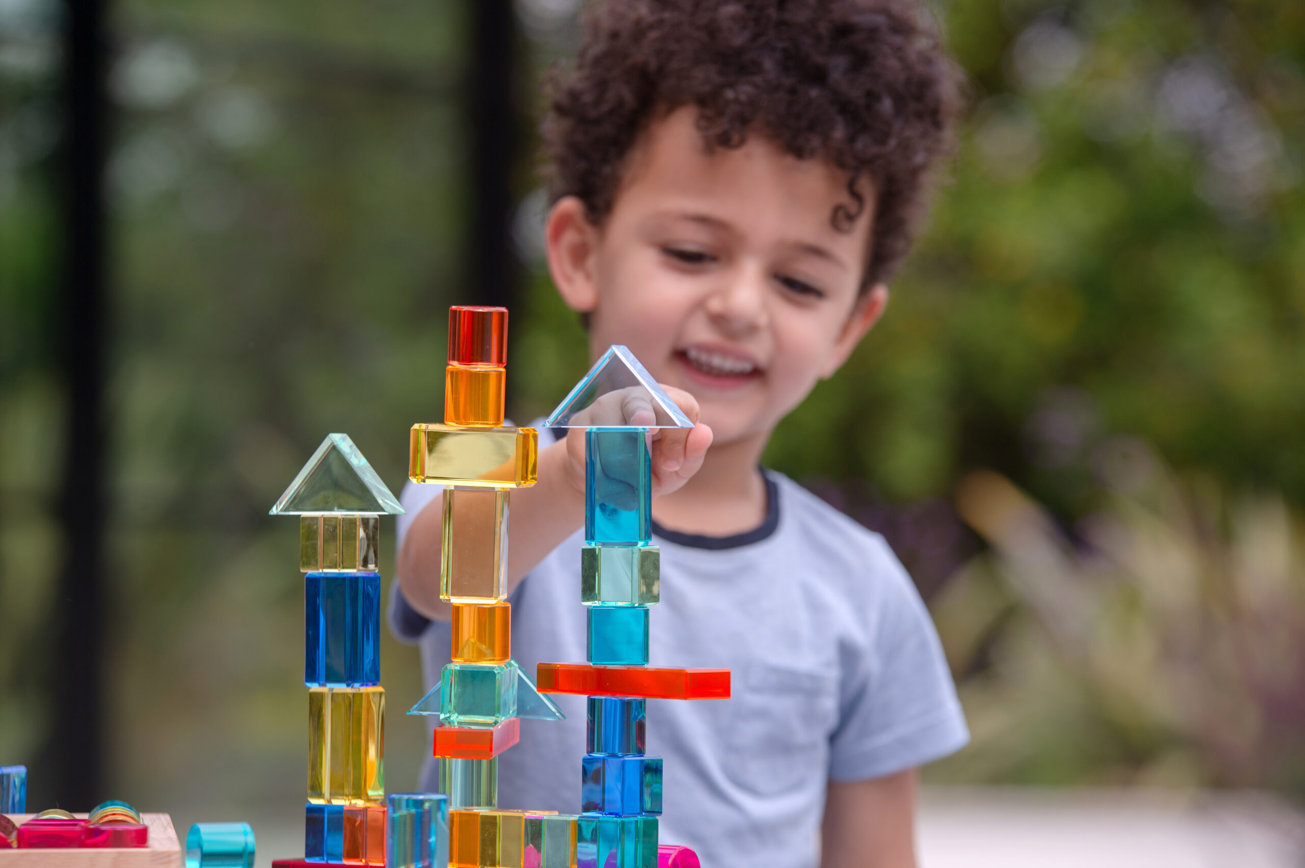 Tato velká stavebnice propojuje hladké průsvitné akrylové bloky v několika tvarech s jiskřivými křišťálově čirými „gem“ kostkami pro opravdu široké možnosti stavění. Děti mohou vytvářet jednoduché věže i složité architektonické konstrukce, zkoušet stabilitu, rovnováhu a různé způsoby skládání. Průsvitné materiály nádherně pracují se světlem a na zrcadlovém podnose vyniknou barvy i odlesky ještě výrazněji. Všechny dílky se pohodlně ukládají do kvalitního dřevěného podnosu z FSC certifikovaného bukového dřeva.
