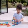 Sada podporuje kreativitu a prostorové myšlení při volném stavění a hledání, jak jednotlivé tvary do sebe zapadají. Rozvíjí jemnou motoriku, koordinaci oko–ruka a dovednosti jako skládání, stavění a vyvažování. „Křišťálové“ gem kostky navíc slouží jako inspirativní prvek pro vyprávění příběhů (okna, dveře, ozdoby), což podporuje popisný jazyk a rozvoj slovní zásoby. Díky otevřenému pojetí se sada hodí pro menší děti na jednoduché skládání i pro starší na promyšlené konstrukce a „projekty“.