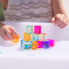 Tato sada podporuje smyslové vnímání světla a barev, protože jemné průhledné válečky vytvářejí krásné reflektivní zážitky při osvětlení a při pohybu na zrcadlovém podnose. Podporuje rozvoj jemné motoriky a koordinace ruky a oka během uchopování, přemisťování a tvorby tvarů. Děti mohou válečky třídit podle barvy, vytvářet vzory, počítat a trénovat logické uspořádání, což rozvíjí i kognitivní schopnosti. Navíc hra podporuje kreativitu a slovní vyjadřování, když děti popisují barvy, odrazy a struktury, které vytvářejí.
