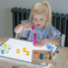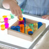 TickiT Gem Circle Mirror Tray je krásně designovaná smyslová sada, která obsahuje 25 průhledných akrylových kruhových gemů v pěti jasných barvách uložených v robustním dřevěném podnose s zrcadlovou základnou. Tyto barevné válečky zachycují a odráží světlo, čímž vytvářejí fascinující prizmati­cké efekty, které děti okamžitě přitahují a povzbuzují k objevování a hraní. Je to vizuálně poutavý materiál ideální pro volnou i strukturovanou sensory hru, který podporuje objevování světla, barvy a rovnováhy při manipulaci s tvary.