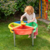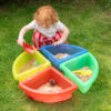 • Vhodné pro hru s vodou, pískem i suchými materiály – doma i venku.