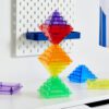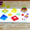 Díky průsvitným barvám jsou ideální pro použití na světelném panelu. Ideální pro logické myšlení, motoriku, koordinaci, imaginativní hru, poznávání barev a popisný jazyk.