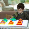 Skládání pyramid pro vytváření konstrukcí v široké škále kombinací. Čtvercové vrstvy jsou navrženy tak, aby se skládaly vertikálně, velké až malé nebo malé až velké, a také horizontálně, aby se vytvořily vyšší struktury.