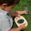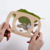 Rám z masivního kaučukovníkového dřeva s madly pro snadné uchopení, uvnitř kterého je lupa s 2× zvětšením (a vloženou čočkou pro 3× zvětšení).