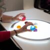 Starší děti je budou fascinovat, když je drží a dívají se skrz, aby viděly svět kolem sebe v různých barvách. Když je polokoule umístěna na objekt, zvětší jej 4krát nebo 5krát, aby poskytl pohled, který má jinou barvu a je zvětšený. Držení dvou nebo tří polokoulí pohromadě vytváří nové barvy a odstíny; jejich použití na světelném panelu rozšíří možnosti dětí pro míchání barev.