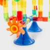 Balení obsahuje různé tvarované trubky, trychtýře, vodní kola, základny a další spojovací prvky, které mohou děti kombinovat do vlastních konstrukcí podle své fantazie. K sadě je přiložen praktický A4 list s nápady na stavby, aby si děti mohly hned začít hrát a učit se.