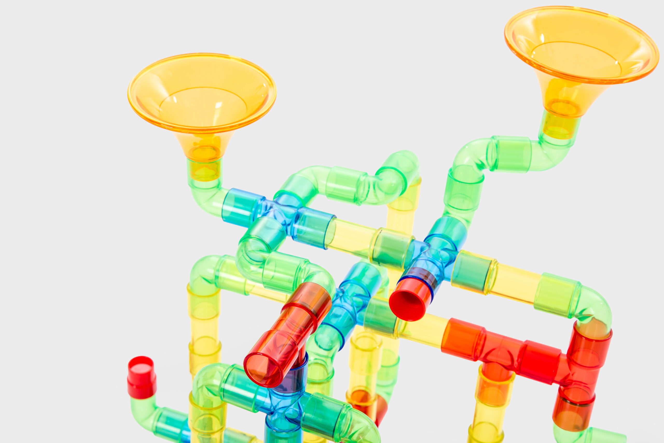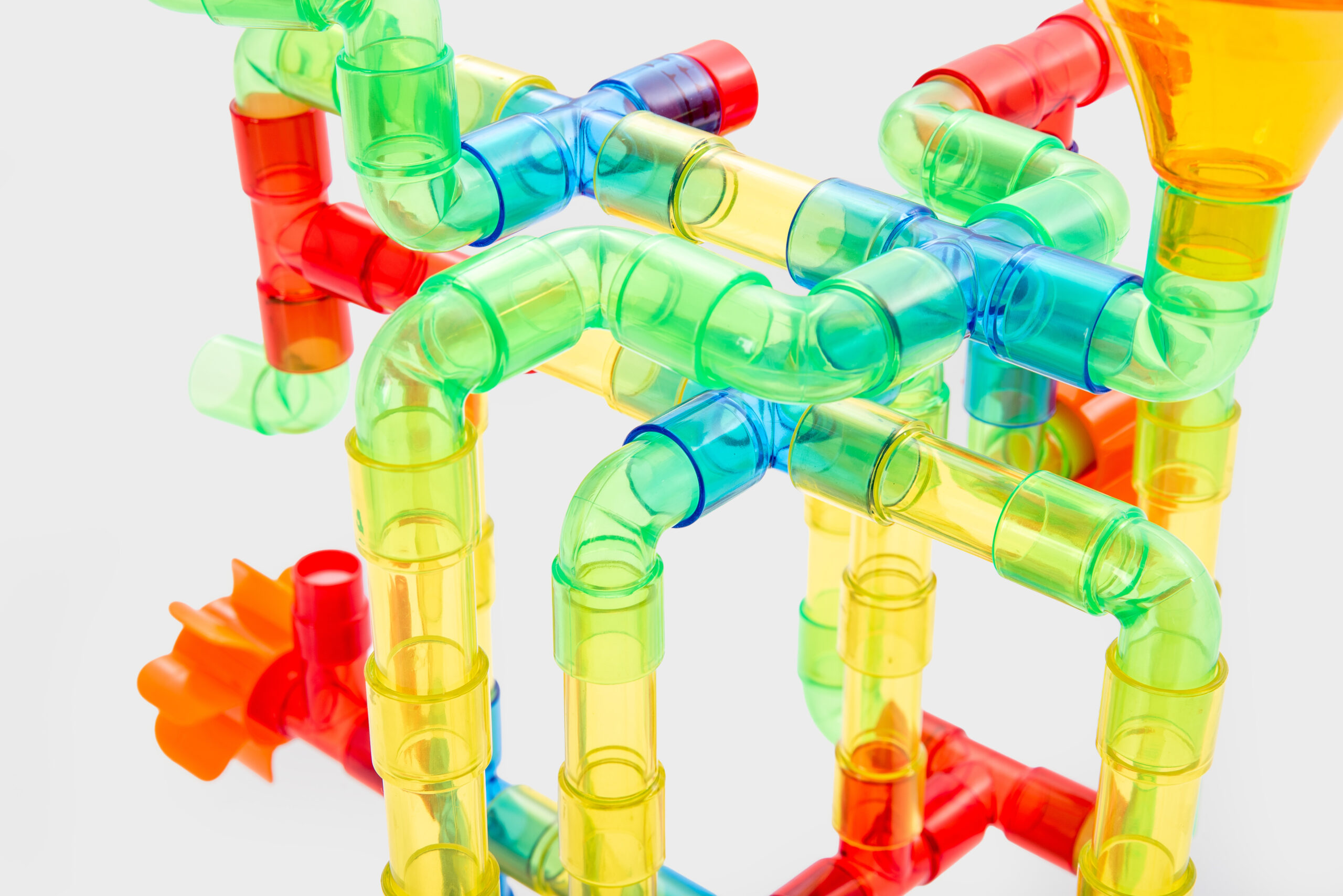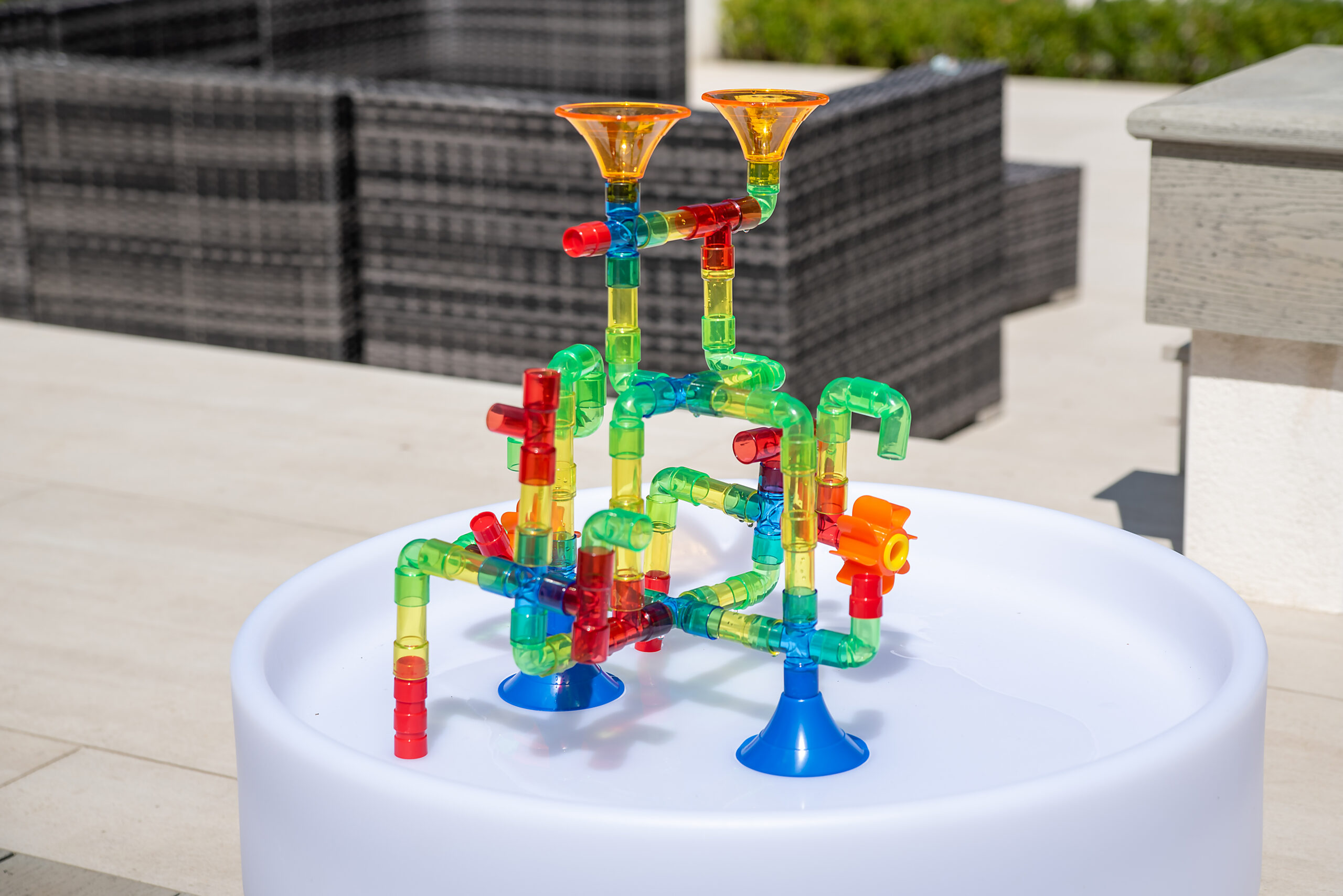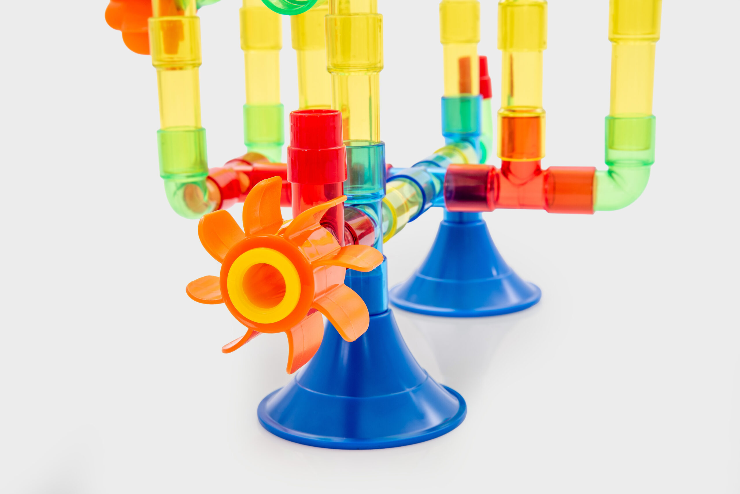 - Stavebnicové průsvitné trubky a vodní prvky pro zábavné konstruování systémů vody a toku.