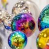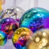 • Sada 4 kulatých zrcadlových koulí s iridescenčními duhovými odlesky