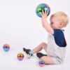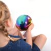 Sensory Reflective Colour Burst Balls je sada čtyř kulatých senzorických koulí z nerezové oceli s duhovým („colour burst“) efektem. Každý hladký povrch vytváří kaleidoskop barevných odrazů a zkreslený „rybí‑oko“ obraz okolního prostoru, což fascinuje nejmenší děti. Kuličky jsou lehké, duté, bez švů a snadno se drží – ideální pro kotoulení, válení, házení nebo volnou manipulační hru .