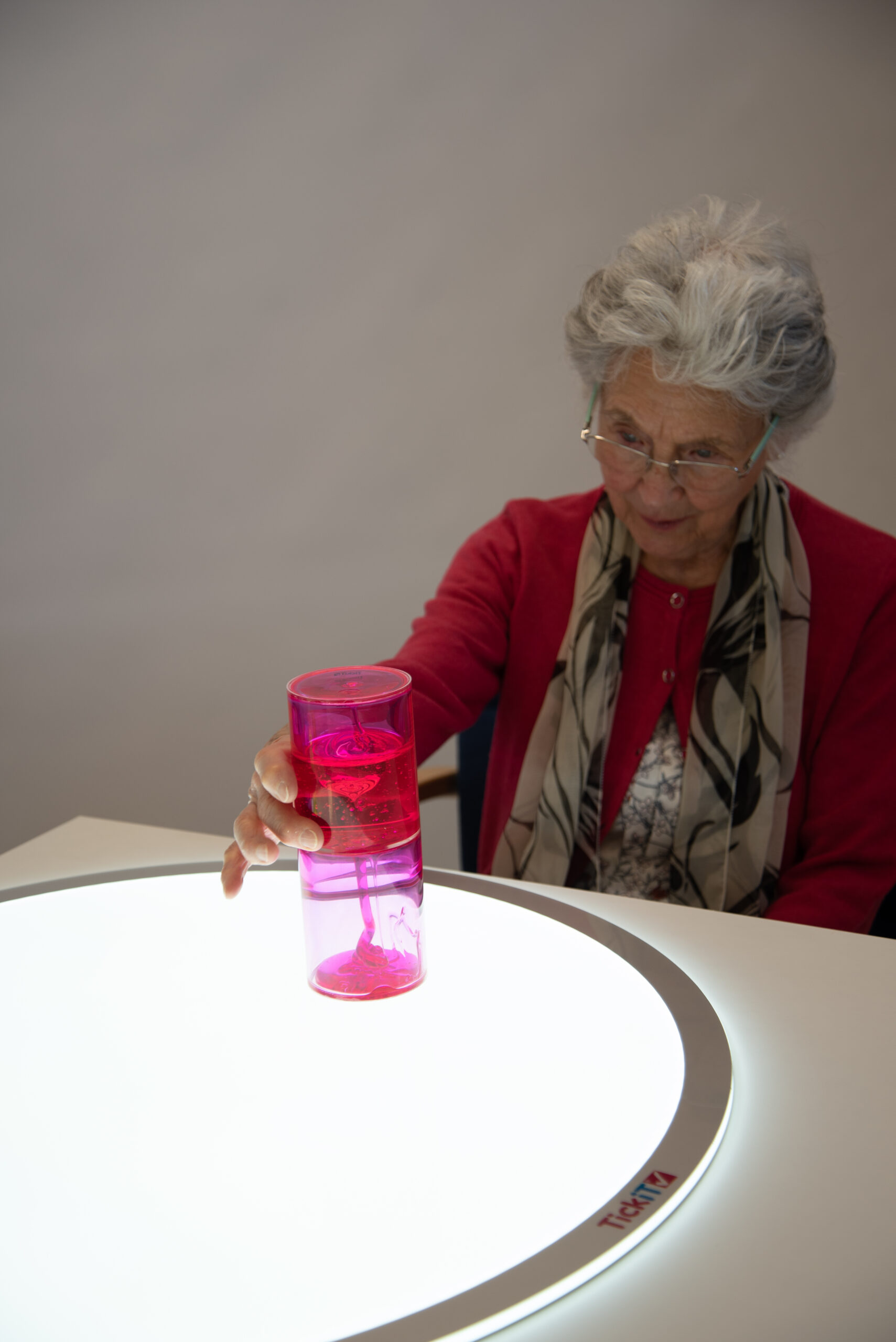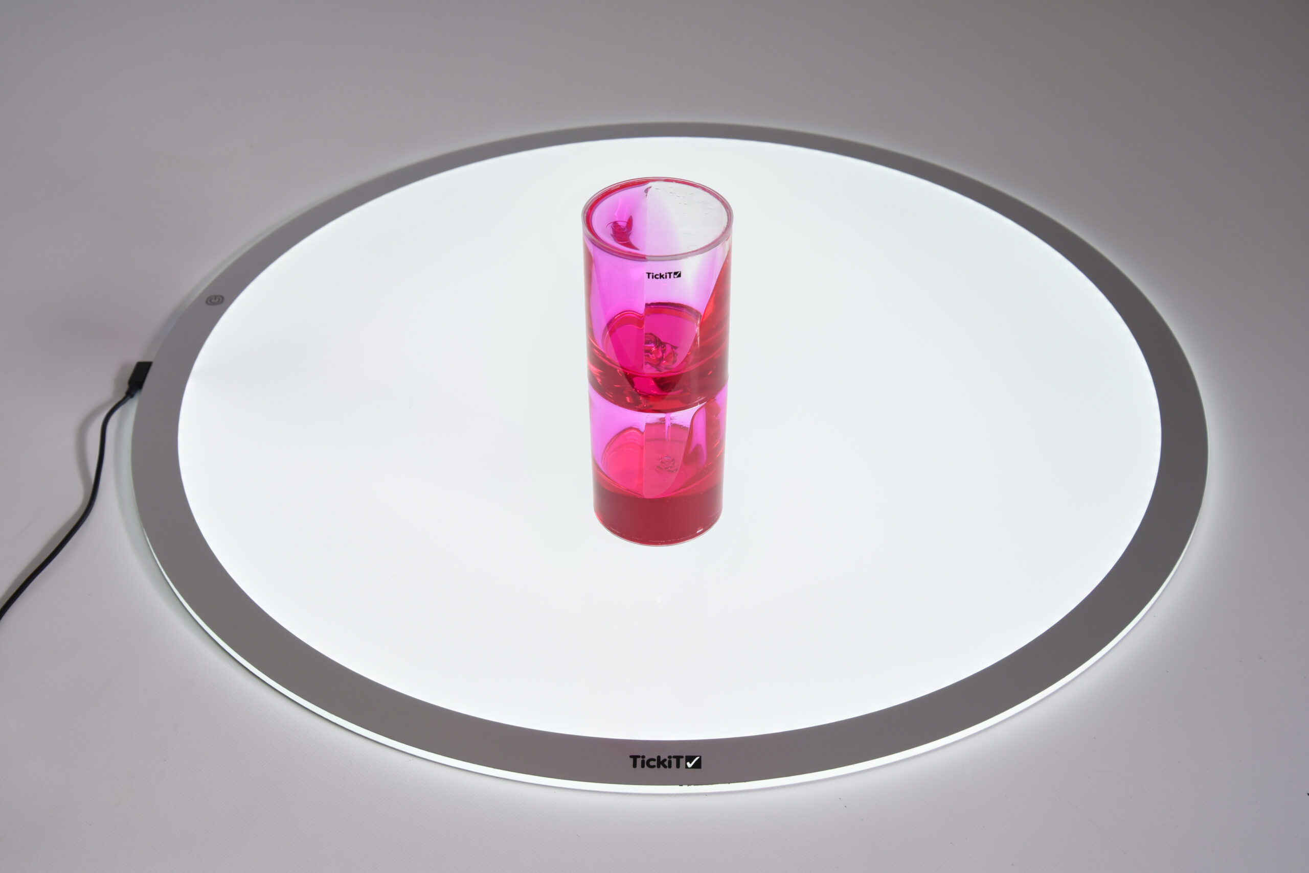tickit® Sensory Jumbo Ooze Tube je fascinující smyslová pomůcka — pevná průhledná trubice obsahující růžovou gelovou tekutinu, která volně stéká a spiralovitě se pohybuje zpět ke dnu. Pomáhá rozvíjet slovní zásobu při rozhovorech s dítětem o pohybu gelu a podporuje pochopení jednoduchých vědeckých principů.