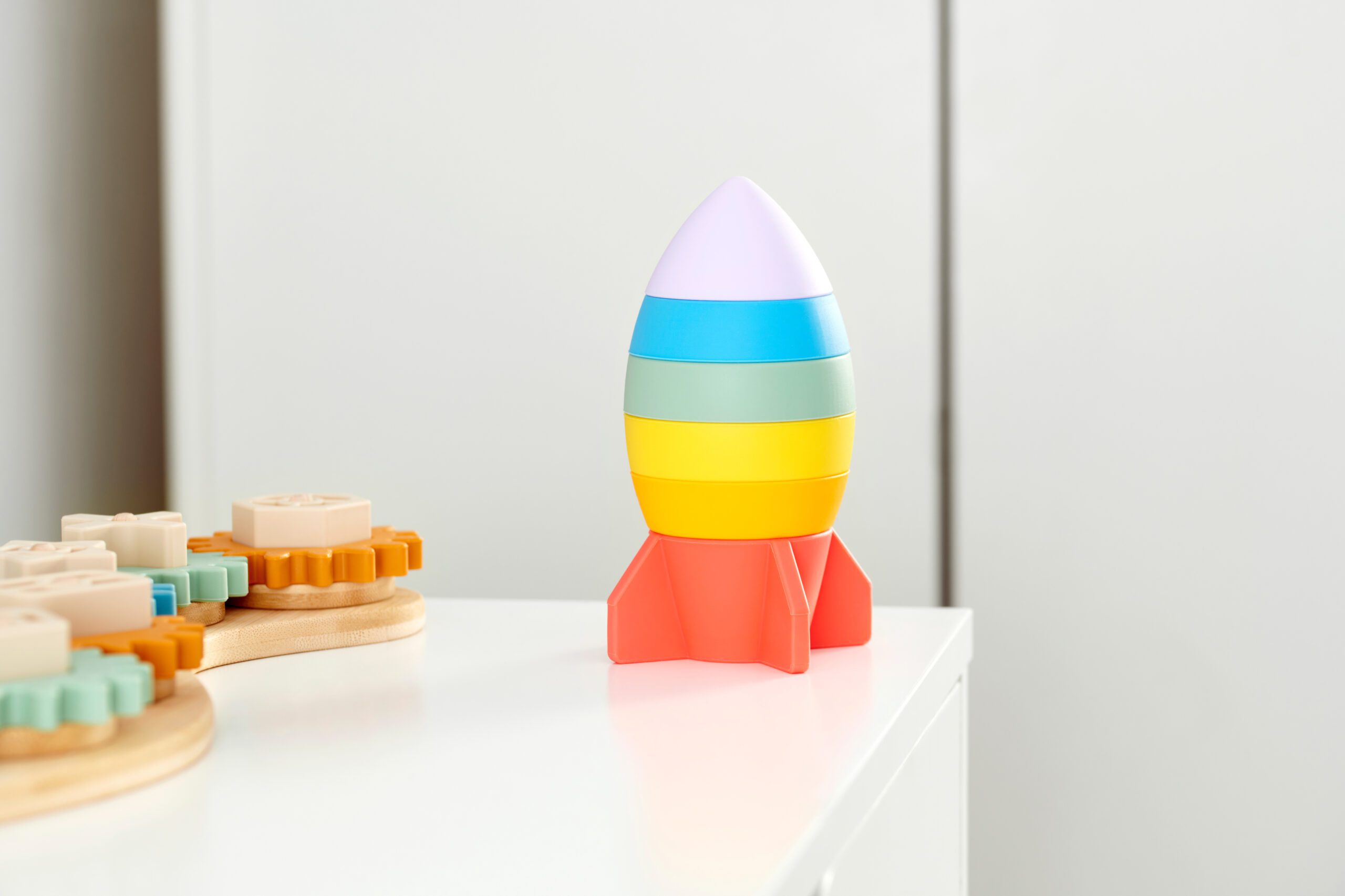 SiliSoft® Rocket Stacker (Rainbow) je veselá sada šesti silikonových segmentů ve tvaru rakety, které do sebe hladce zapadají. Díky jednoduchému, ale poutavému designu se hračka výborně hodí pro první stohování, vkládání i rovnovážné experimenty. Ideálně stimuluje hmatové vnímání, jemnou motoriku a koordinaci ruka‑oko u nejmenších dětí . Je dostupná ve dvou barevných variantách – živá duha (Rainbow) nebo klidné zemité tóny (Earth) .