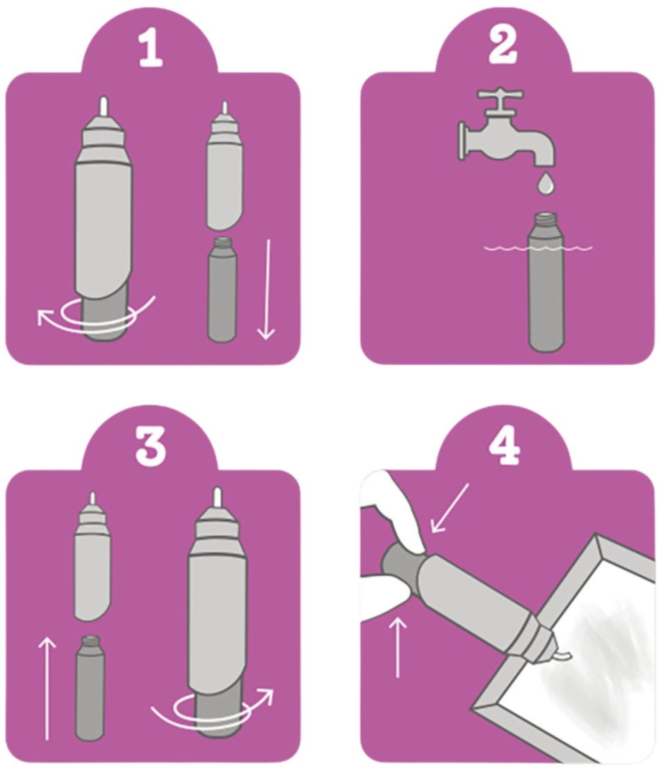 - Bez nepořádku — žádné barvy, inkoust ani fixy, jen čistá voda.