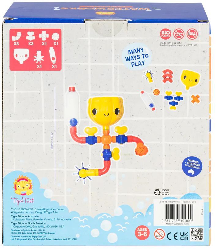 Proměňte koupel ve zkoumání vody jako malý inženýr! Interaktivní set Waterworks ECO se skládá z 11 konfigurovatelných dílů, které děti libovolně skládají na kachličky a pomocí chytrých ventilů směrují, zastavují nebo znovu pouštějí proud vody. Hra bohatě rozvíjí STEAM dovednosti – příčinu a následek, logiku, jemnou motoriku i koordinaci oko-ruka – a přitom je to prostě velká zábava. Díly drží díky přísavkám na hladkých površích (vana, sprchové kachličky či okno pro venkovní vodní hrátky) a jsou vyrobené z bioplastu v rámci ECO řady Tiger Tribe. Ideální dárek pro zvídavé děti, které milují vodu, experimenty a nekonečné „co se stane, když…“.