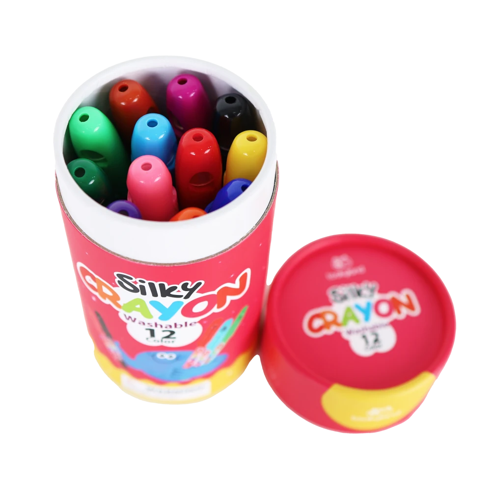 Ponořte se s dětmi do světa barev a fantazie s Jemnými voskovkami – 12 ks. Tyto voskovky jsou lehké a měkké, takže se krásně roztírají již při jemném doteku – ideální pro malé dětské ruce. Bez zbytečného tlačení a nepořádku si děti užijí tvoření na papíře, ale také bezpečně na pokožce či obličeji.