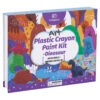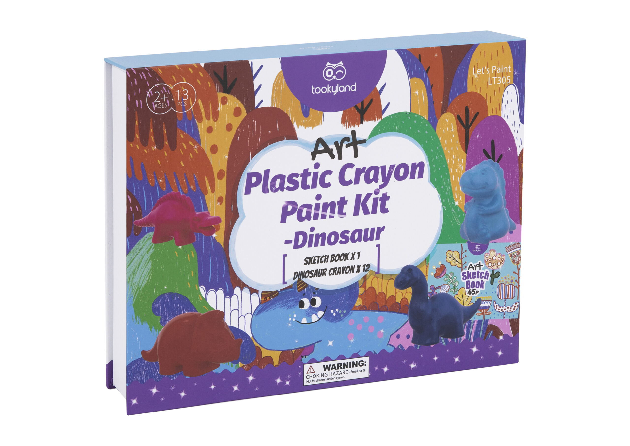 Tato kreativní sada je určena pro nejmenší děti, které se začínají seznamovat s kreslením a tvořením. Obsahuje 12 barevných voskovek ve tvaru roztomilých dinosaurů a kreativní sešit s 45 listy plných omalovánek a prázdných stran pro vlastní kreslení. Voskovky jsou uloženy v pevně uzavíratelném boxu, který zajišťuje jejich bezpečné skladování a snadnou přenosnost. Sada je vhodná jako dárek k narozeninám, Vánocům nebo jiným příležitostem.