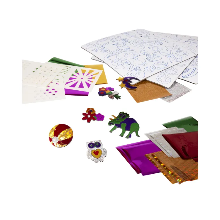 - Obsah sady: 8 archů samolepek, 58 různobarevných folií, 3 listy šablon a návod.