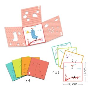 - Obsah balení: 10 listů k dotvoření, 12 suchých pastelů, 1 savý papír, 2 archy průhledných samolepek, návod s modely.