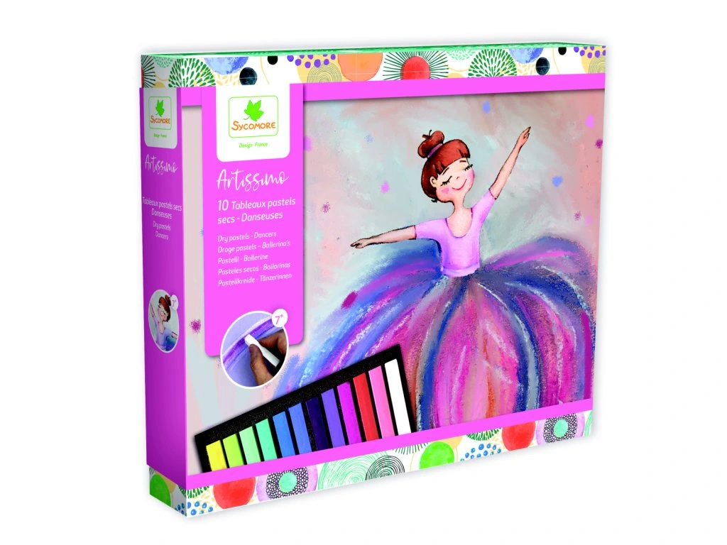 Kreativní sada, která děti od cca 7 let hravě seznámí s technikou suchého pastelu. Na barevné podklady nejprve nalepí siluetu baletky a potom přichází zábavná část – domalování šatů a pozadí měkkými pastely. Vznikají tak efektní, barevné obrázky plné pohybu. Tvoření rozvíjí fantazii, trpělivost i jemnou motoriku a výsledné práce se krásně vyjímají v rámečku.