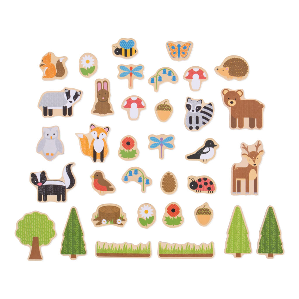 S touto sadou magnetek s lesními zvířátky od Bigjigs Toys mohou děti vytvářet vlastní příběhy plné dobrodružství a fantazie. Najdou zde oblíbené postavičky jako lišku, sovu, ježka, srnku, medvídka a další kamarády z lesa. Každý magnet je krásně ilustrovaný, barevný a snadno uchopitelný i pro malé dětské ručičky.