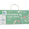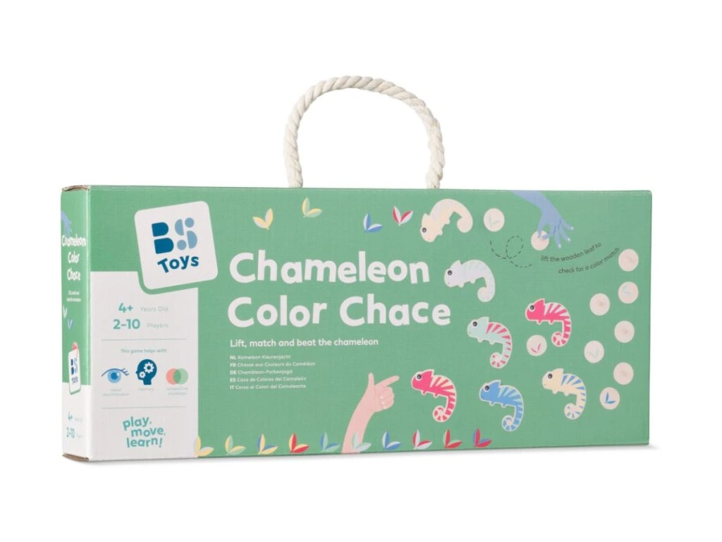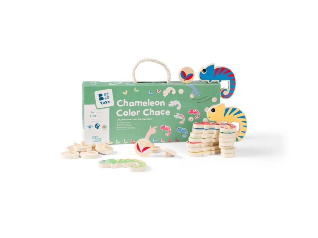 Chameleon – honba za barvami je svižná a zábavná hra, která děti vtáhne do světa barev, rychlého rozhodování a pozorného pozorování. Úkolem hráčů je najít správný list, pod který se chameleon nemůže schovat. Aby to bylo možné, musí list obsahovat dvě barvy, které se na chameleonovi vůbec nevyskytují.