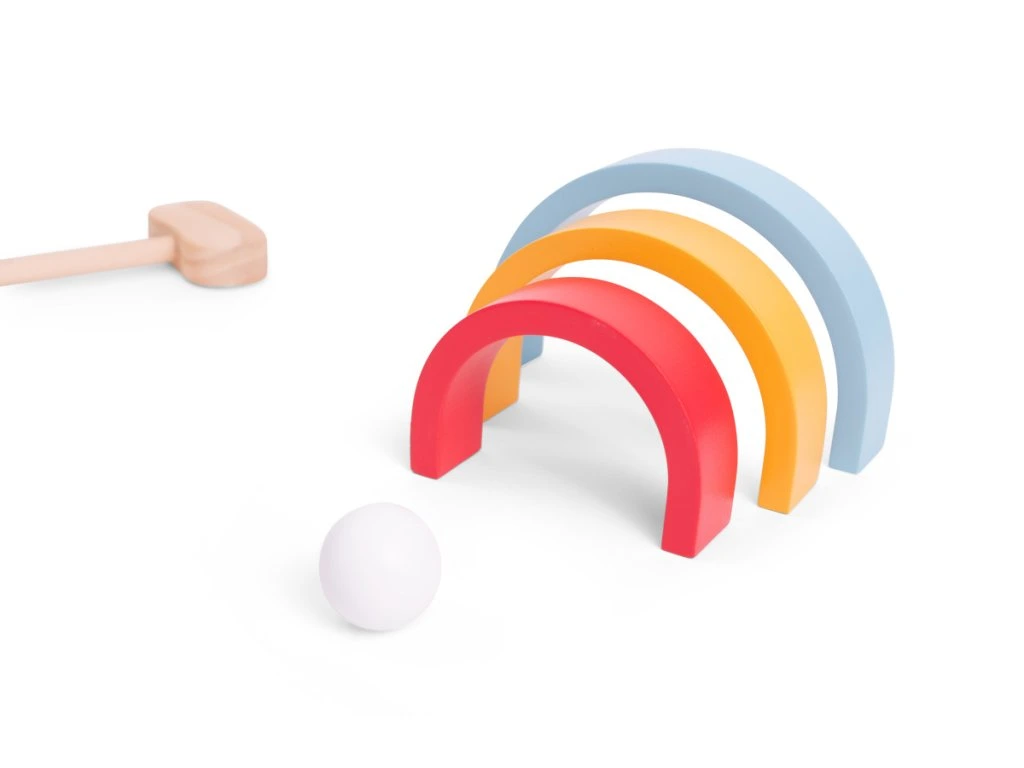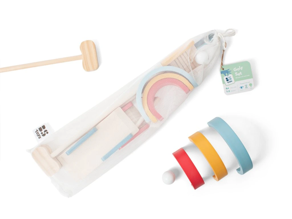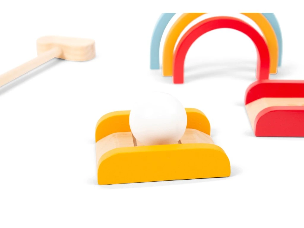 Objevte kouzlo minigolfu v dětském provedení s krásnou dřevěnou golfovou sadou BS Toys pro 1–4 hráče od 4 let. Tato sada je ideální pro hru venku – na zahradě, v parku nebo kdekoliv, kde je dostatek prostoru. Součástí balení jsou dvě golfové hole, dva míčky a sedm různých barevných překážek, díky nimž si děti mohou vytvářet vlastní zábavné minigolfové dráhy. Hra rozvíjí koordinaci oko-ruka, trpělivost a soustředění, a navíc motivuje děti k aktivnímu pohybu na čerstvém vzduchu. Skvělý způsob, jak trávit čas s kamarády bez nutnosti obrazovek.