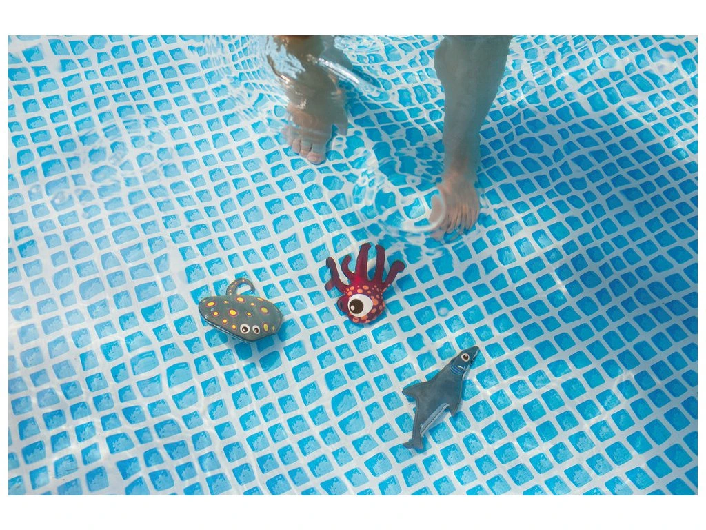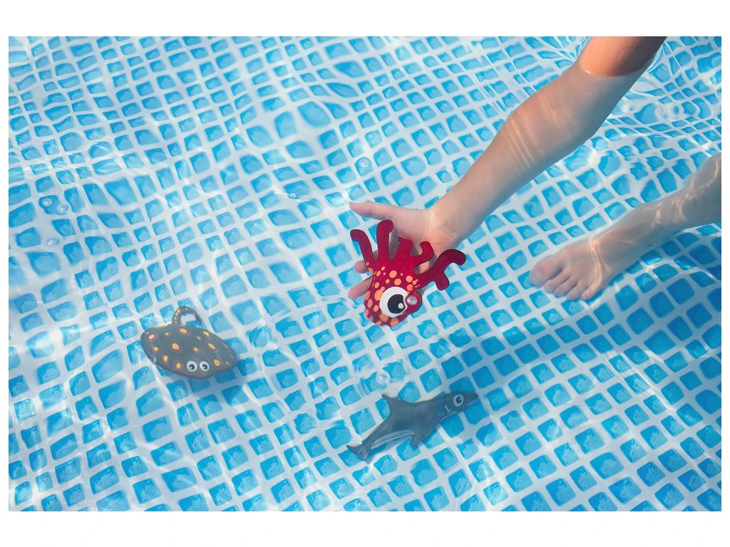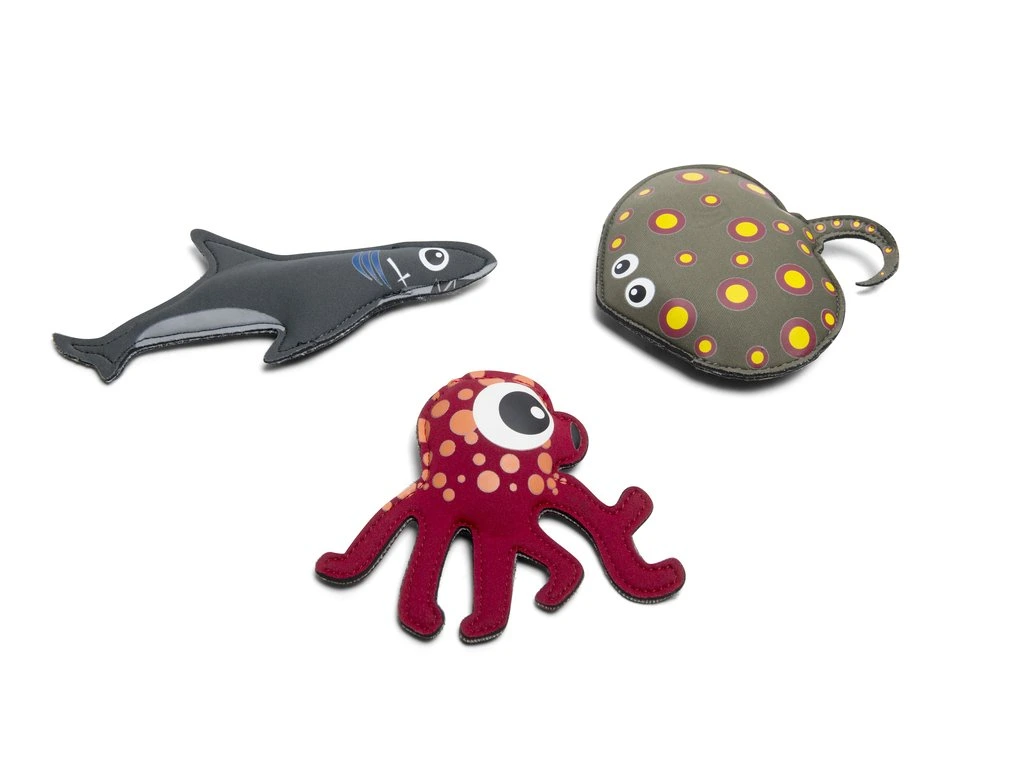 Rozvíjejte své potápěčské schopnosti a užijte si spoustu zábavy s touto neoprenovou sadou mořských zvířat! Tato vodní hračka je speciálně navržena pro použití v bazénech či u moře – zvířata jsou vyrobena z měkkého, odolného neoprenu a plněná pískem, takže se snadno potopí na dno. Děti si tak mohou trénovat potápění hravou a bezpečnou formou. Sada obsahuje 3 zvířátka o průměru cca 21 cm, která jsou vhodná pro děti od 6 let. Ideální hra pro horké letní dny, dovolenou nebo návštěvu aquaparku.