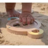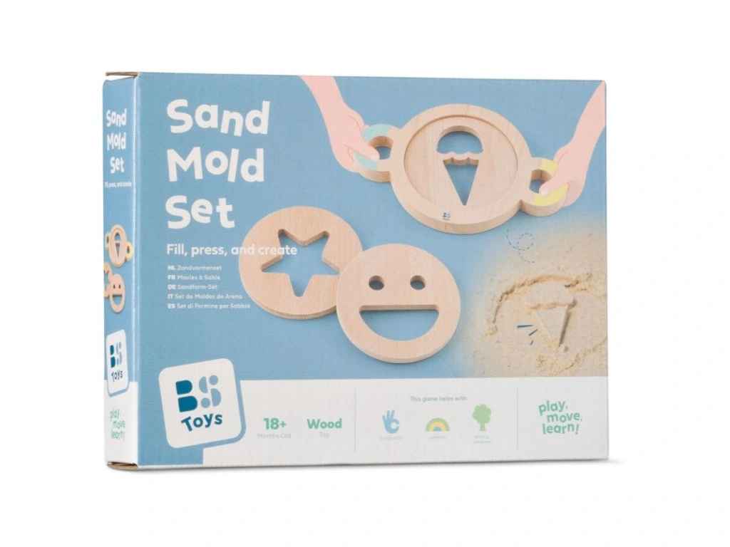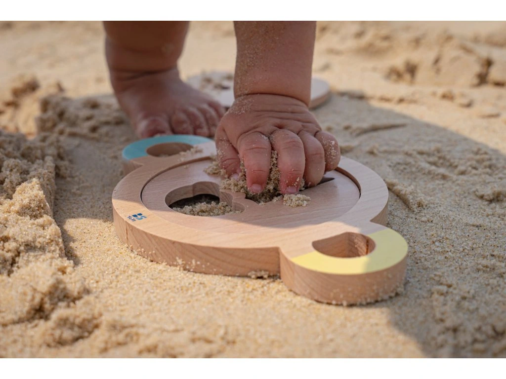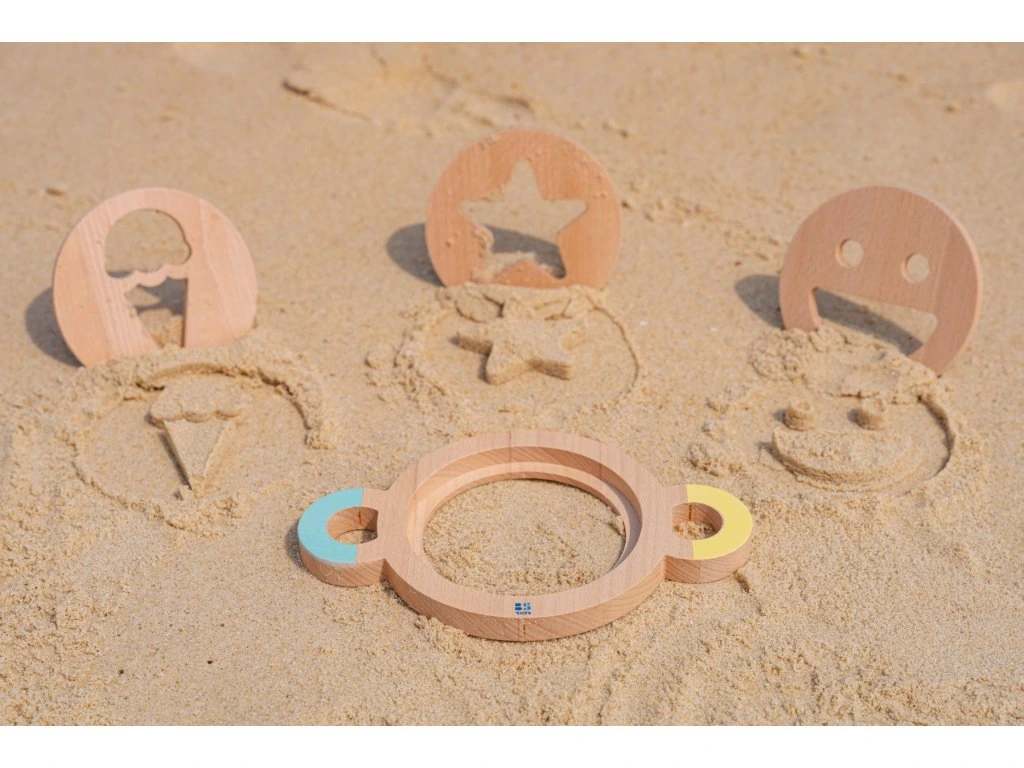 Sada dřevěných formiček na otisky do písku přináší dětem nový způsob, jak si hrát na pískovišti. Místo klasického stavění mohou děti vytvářet otisky různých tvarů přímo do písku nebo do vlhké hlíny. Stačí formičku přitlačit – a v písku se objeví krásný obrázek.